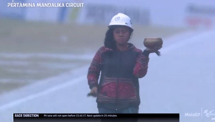 TIMES Brebes/Raden Rara Isti Wulandari, sang pawang hujan saat Sirkuit Mandalika, Lombok Tengah, NTB, Minggu (20/3/2022) (FOTO: t-2.tstatic.net)