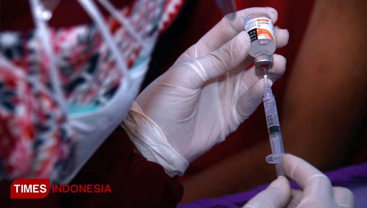 TIMES Brebes/Salah satu tenaga kesehatan saat mengisi dosis vaksin untuk disuntikkan. (FOTO: Adhitya Hendra/TIMES Indonesia)